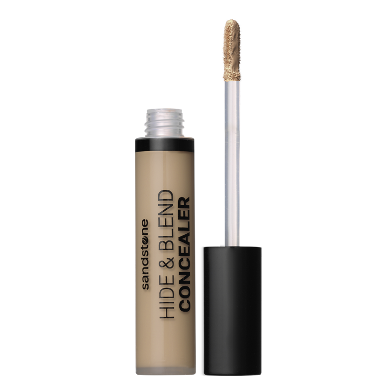 Sandstone Hide & Blend concealer er den perfekte flydende concealer til at mindske synligheden af rødme, urenheder og mørke rander. Den er beriget med glycerin som er en effektiv fugtgivende hudpleje ingrediens. Den har en medium til fuld dækkeevne og er nem at blende ind i huden, så du får et ensartet og friskt look. Concealeren føles stadig let og behagelig på huden på trods af den effektive dækkeevne og den holder i mange timer. Påfør concealeren med applikatoren på dit problemområde, og ton den ud med Sandstone Concealer Brush. Farverne med C har varme undertoner, og farverne med N har neutrale undertoner. Farverne med laveste numre er lysest, og bliver derefter mørkere des højere numrene er. Den er Allergy Certified, vegansk, indeholder ikke parfume og har et meget lavt nikkelindhold. Anbefales til sensitiv hud.